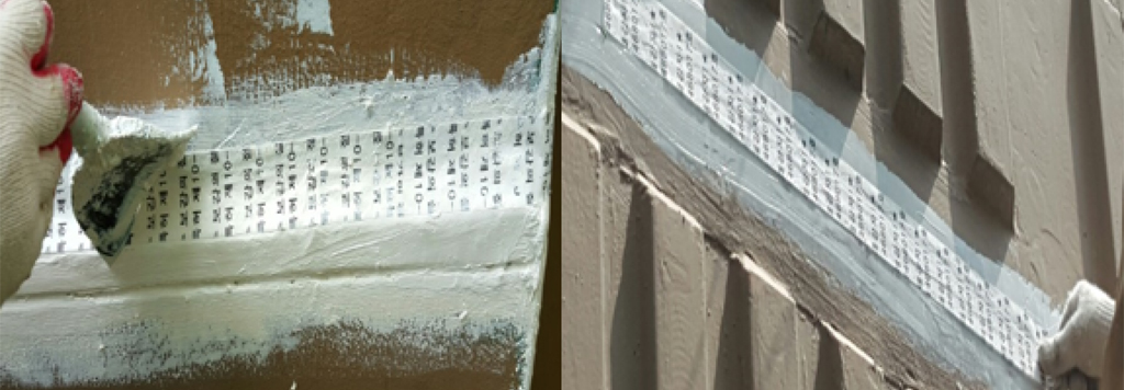 퍼티와 퍼티 사이에 안착되어 접착력 향상보강시트가 들떠 탈락되는 현상 없음! -