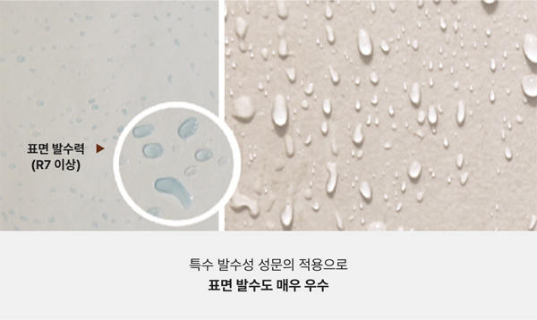 표면에 물이 잘 스며들지 않는 성질표면 발수도 R7 이상