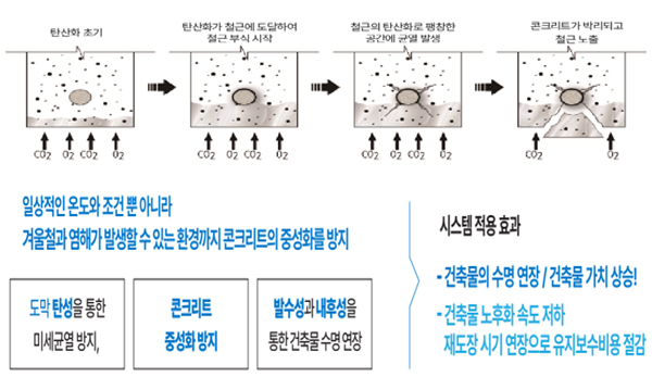 탄산칼슘으로 변화하는 현상 방지건축물의 내구성, 안정성 증대 기여